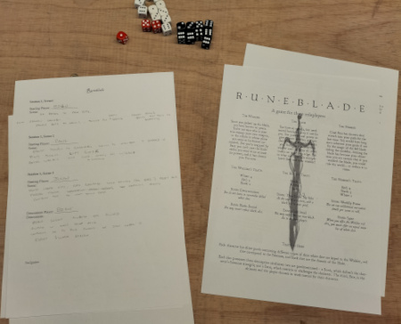 After a bit of internet searching I found several websites and videos dedicated to the art of Bookbinding. After a bit more research, and faffing about deciding what I would actually do, I decided it would probably be best to bind the pages together with either a simple chain stitch or a ribbon binding as both would be something achievable for a first timer. In the end up as this was a print-and-write style solo-rpg I decided to print off two copies and bind one with ribbon binding, the other with a chain stitch.